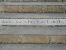 The southwest end of the park consists of a lake which is fed from the canal. Fishing is permitted. Next to the lake is a word sculpture that reads