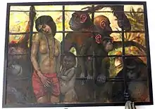 In one of his most cryptic and intriguing works, Affenballade (Ballad of the Apes), he created a grid of bars that are painted along the lines of the Hessian sacks he used as a canvas.[6] In the late 1920s, he began to create, apparently for private amusement, a series of eccentric, caricature-like watercolors that reveal a knowledge of works by such modern figures as Emil Nolde and Alfred Kubin. These often satirical commentaries are unlike any of his other, more formal works, and are described by later critics as revealing both a scurrilous sentiment [7] and a debt to German Expressionism.[8] These sometimes anguished images are the pieces that have endured and are of greatest interest to contemporary audiences, who see in them a psychological reflection of the time between the wars in Vienna.