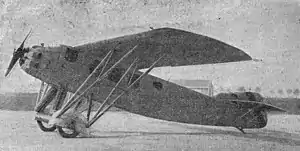It was powered by a 370 kW (500 hp), eighteen cylinder Salmson 18 Cm. This was one of the last, and the most powerful, of Salmson's water-cooled radial engines, with two in-line rows of nine cylinders. It was enclosed in a rounded cowling with caps over the cylinder-heads. Fuel was held in the wing centre-section and two Lamblin radiators were mounted on the undercarriage legs. Behind the engine the fuselage was rectangular in section, defined by light-metal, U-section longerons and cross-frames. The open cockpit was at the wing leading edge, with small side-windows for a better view downwards. Behind the cockpit the cabin seated six passengers, each with their own window. Entry was via a port-side door and there was a disposable emergency ceiling hatch to allow passengers to escape by parachute.[1]