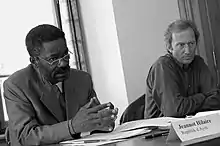 - ↑ Picture of Dulcie September (together with anti-apartheid activist Pius Frey) in 1986 on the occasion of the press conference in St.Gallen.