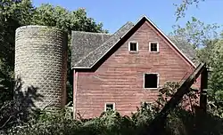 Hans J. Jorgensen Barn is a historic building located in Kimballton, Iowa, United States. Its significance is derived from its association with Jorgensen, who was the instrumental in the founding and early growth of the town, a Danish immigrant community.[2] The barn is a pyramidal roof variant of the Square Hipped Roof Barn. Built in 1908, it is the only barn of this type that remains in the Danish Settlement area.[2] The concrete blocks used for its foundation and the adjacent silo, which are part of this historic nomination, were locally produced in a Danish-influenced industry. This two-story heavy-timber structure utilized mortise and tenon construction for the animal stalls and supports for the hay loft. The barn was listed on the National Register of Historic Places in 1991.[1]