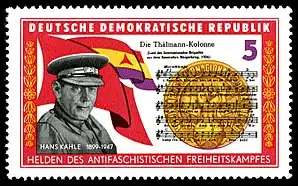Kahle fought until 1938 in the Spanish Civil War, in the International Brigade of the Spanish Republican Army. Initially, he was commander of the "Edgar André Batallion", from November 1936 Commander of the XI International Brigade (Thälmann)[1] In 1937, he became commander of the 17th Division, and during the Battle of the Ebro in 1938 he commanded the 45th Division of the Spanish Republican Army.[2]