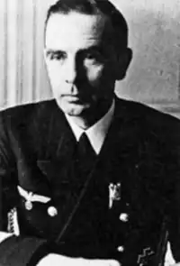 Hans Karl Meyer (born 1 December 1898 in Stolzenhagen, died 23 January 1989 in Hamburg), was a German naval officer and Konteradmiral in the Kriegsmarine during World War II and later Flotilla admiral of the German Navy.[1] Meyer was most notable for being commander of the battleship Tirpitz, of 1/Seekriegsleitung (SKL) Operations of Naval Command and being one of six Kriegsmarine admirals who were subordinated after World War II in the new German Navy.