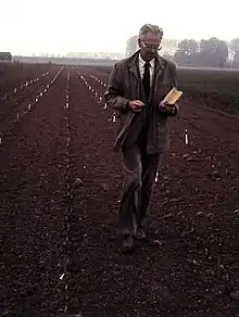 H.M.Heybroek in experimental field - elm trial Wageningen - DORSCHKAMP (May 15, 1984)