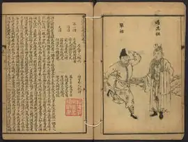- 1 2 Rainier Lanselle, dans André Lévy (editor), Dictionnaire de littérature chinoise, Presses universitaires de France, « Quadrige », 1994, rééd. 2000, p. 109. "L'ouvrage a connu une certaine fortune tant en Chine qu'à l'étranger : adapté par Takizawa Bakin sous le titre de Kyōkakuden (Les Chevaleresques), il fut premier roman chinois traduit dans une langue occidentale (en excluant le genre court)."