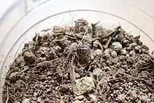 They are very docile tarantulas, lacking medically significant venom. Though they are fairly skittish, and do own urticating hairs. They make intricate webs, and are usually out of their burrows, which they enjoy to do.[1][2]