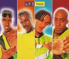 "Happy" was covered by British R&B group MN8 and released in July 1995 as the third single from their debut album, To the Next Level (1995).[8][9] The song peaked at number eight on the UK Singles Chart and entered the top 20 in New Zealand, where it reached number 11. The track was also remixed by Dalvin DeGrate of Jodeci.[10][11]