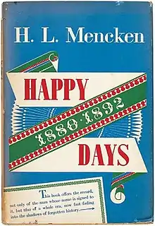 Happy Days, 1880–1892 (1940) is the first of an autobiographical trilogy by H.L. Mencken, covering his days as a child in Baltimore, Maryland from birth through age twelve. It was followed by Newspaper Days, 1899–1906 (1941) and Heathen Days, 1890–1936 (1943).