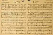 "Happy Feet" is a song with music by Milton Ager and lyrics by Jack Yellen, first published in 1930. It was originally introduced in the Universal Pictures revue film King of Jazz (1930), where it was performed by Paul Whiteman and his Orchestra with the Rhythm Boys.[2]