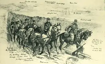 Romanian artillery during the 1916 campaigns (drawing by H. C. Seppings-Wright, The Illustrated London News)