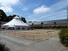 The site's activities have evolved over time, and are now mainly focused on tourism, sporting activities and culture, with over 60,000 visitors a year on average, according to Lorient Agglomération.[68] More than 2,500 people will visit the Haras during the 2019 European Heritage Days.[69] Visits include the stables, the forge, the main tack room and the breeding laboratory.[68] All events are managed by Sellor, which also rents out the site for weddings, seminars and cabarets. Equestrian shows are organized from April to December,[70] with more than a hundred shows performed each year, under a big top or outdoors.[68]