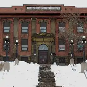 Harbour View High School is a high school located in Saint John, New Brunswick, Canada. There are many students attending grades 9-12 there.[4] The school has 68 staff members. The school's Principal is Michael Butler and the two Vice Principals are Christine Dumont and Nicholas McCaustlin, HVHS was formed in 1997 with 900 students, when the former Saint John Vocational School (200 students) was transformed into HVHS to accommodate School District 8's new geographic zoning policy for its 5 high schools. The school hosts several international students.
