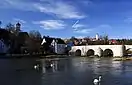 The historic stone bridge from the 18th century is also worth seeing. The arched structure was built in 1729 after a devastating flood, consisting of stone blocks with seven bays and covered pillars. Suevit was also used as building material. In order to finance the maintenance of the bridge, the municipality has always had the right in the past to levy a bridge and pavement toll. At the end of World War II in 1945, two arches of the bridge were destroyed by explosions. The damage was completely repaired after the end of the war by a slight widening at this position.