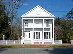 It is a two-and-a-half-story Plantation Style house with a two-story portico supported by four square columns. As of 1970, all of its windows were 16 over 16, many with their original glass.[2]