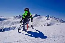 Since his injuries, Magar has tried a variety of sports and adventures, they include: golf, skiing, skydiving, kayaking, and rock climbing. He has also played wheelchair rugby and wheelchair basketball. He holds the world record for being the first double above-knee amputee to summit a mountain over 6,000 m (20,000 ft).[1] And now, as of May 2023, he is the first and only ever double above-knee amputee to summit the world's tallest mountain, Mount Everest.