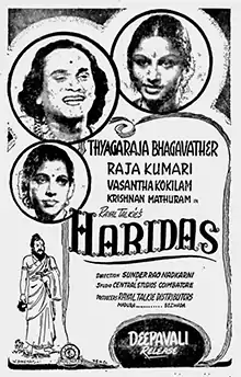 Haridas is a 1944 Tamil language film directed by Sundar Rao Nadkarni and starring M. K. Thyagaraja Bhagavathar, T. R. Rajakumari and N. C. Vasanthakokilam.
