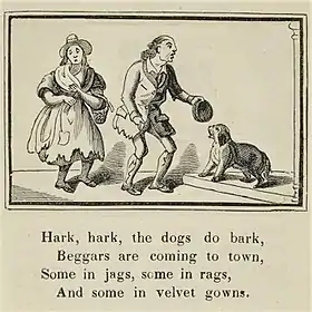 - ↑ "Hark, Hark, the Dogs Do Bark". vwml.org. English Folk Dance and Song Society. Retrieved 10 December 2017. The Library places the rhyme at page 60 of the first edition.
