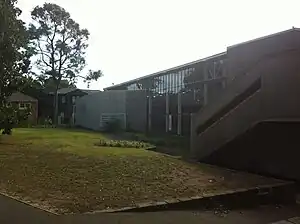The Harold Holt Memorial Swimming Centre is a public swimming pool complex located on the corner of High Street and Edgar Street, Glen Iris, Melbourne, Australia. Built in the 1960s by Australian architects Kevin Borland and Daryl Jackson, the Swimming Centre is considered to be a fine example of Brutalist architecture.[1] Originally built in 1927 as a municipal swimming baths, the facilities were renovated in 1967 by Borland and Jackson to accommodate for higher swimming participation numbers.[2] It is named in honour of Prime Minister Harold Holt, whose apparent drowning death was announced during its construction and who was the local member of parliament (representing the Division of Higgins).