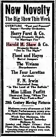 Lovers of vaudeville, pure, select and high-class, with no burlesque or horseplays to detract from its merits, will be amply provided for at the Buckingham the coming week, commencing with the matinee to-morrow, when Girard's Inter-Ocean Vaudevilles open for a week's engagement. It is a pleasure to note the many names of well-known and well-liked vaudeville stars combined in one show...Deservedly heading the bill will be found Miss Grace Emmet and Harold M. Shaw, the dramatic favorites who, assisted by the little comedian, Eddie Russell, will present a sketch by Arthur J. Lamb, entitled "Why Papa Consented." It can be taken for granted that this will be a treat in the way of genteel comedy.[7]