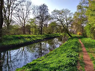 The section from Damhus Lake to the sea is also called Damhusåen. It runs through first the Vigerslev Park and then the Valby Park and follows the boundary between Copenhagen and Hvidovre municipalities.