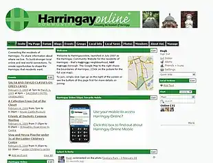 Started on 1 July 2007, Harringay Online was one of the first neighbourhood websites to be set up using social media technology.[1] It was established with the stated aim of strengthening the community in the neighbourhood of Harringay in the north London Borough of Haringey. The site aims to achieve a blend of web-based and real world neighbourhood interactions.[2]