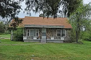 The home was constructed with many different materials[1] from the 1930 to the 1949 era. Most notable are over 300 glass bottles around the exterior of the house. The bottles are haphazardly placed and vary in size, shape and color. Coke bottles, Milk of Magnesia, Karo syrup and medicine bottles are but a few of the bottles making up the exterior of the house.