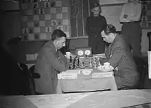 - ↑ Golombek himself always disputed that his Grandmaster title was 'honorary', insisting that it was belatedly bestowed for his playing achievements in the 1940s (see Hartston, William (10 January 1995). "Obituary: Harry Golombek". The Independent. Archived from the original on 9 May 2022. Retrieved 1 May 2019.).