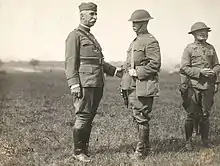 In 1917, he was promoted to commander of the 58th Brigade of the 29th Division.[15] He accompanied his unit to France in June of that same year, serving for three months after the US entered the Great War (World War I). On September 27, he was named United States Army Provost Marshal General to General John J. Pershing's American Expeditionary Force in France. He held this position during the rest of the war and until 1919.[16]