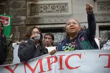 Walia was active in the Olympic Resistance Network (ORN), which instigated several anti-Olympic actions and demonstrations during the 2010 Winter Olympic Games in Vancouver.[52] The actions were in response to growing homelessness rates of low-income residents in the DTES and cuts to social programs due to urban gentrification in the build-up to the games.[53] The Women's Memorial March Committee and Power of Women group also resisted the Games by refusing to cancel or reroute the annual February 14 Women's Memorial March[53] and obstructing the Olympic Torch Relay as it passed through the DTES.[44]
