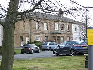 Hartford Manor is a former country house in the village of Hartford, Cheshire, England. Its age is uncertain; it was said to have been re-fronted in about 1820 for John Marshall, but the core of the building is earlier.[1] It has since been altered and extended.[2] During the 20th century the building was used an office. It one time it was used by North West Gas;[1] as of 2011 it is the office of Holidaybreak.[3] The house is constructed in yellow ashlar stone, and it has a hipped slated roof. Its front is symmetrical with two storeys and five bays. The central bay is slightly bowed, and contains a portico with two Doric columns and a flat entablature. It is recorded in the National Heritage List for England as a designated Grade II listed building.[2] It is now used for office accommodation.[4]