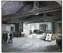Originally, the club engaged in holding mock trials, which became more elaborate over time. This culminated in a member, Lemuel Hayward, secretly planning to stage a musical on the night he was to host the club's meeting. On December 13, 1844, Hayward and other members staged Bombastes Furioso in room 11 of Hollis Hall, which began the Hasty Pudding Theatricals.[10]