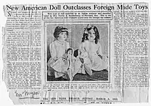 - 1 2 “New American Doll Outclasses Foreign Made Toys.” The New York Herald, Sunday, March 6, 1921.
