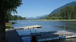 Neilson Regional Park[1] and the district of Mission is on the immediate west shore of Hatzic Lake, while the centre of the oxbow is Hatzic Island. Northeast of the lake is Dewdney Peak (Hatzic Mountain) which forms the southmost endpoint of the Douglas Ranges. In addition to a large number of private residences the locality has a few commercial campgrounds.