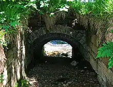 Local tradition maintains that Robert Burns used to visit the glen to enjoy a dip in the Kingen Cleugh Burn when he lived at Mossgiel Farm near Mauchline. The remains of an old stone built bath or cistern still exists with moss covered steps running down to it. Locals would point out this cistern as being a favourite bathing place where he enjoyed a dip in the refreshingly cool waters; a vague memory of a Lady Sophia is also associated with this site.[9] The site would have been ideal, sitting at the bottom of the glen with its rivulet and water also entering via the tunnel that runs down from above the Damhead Weir.