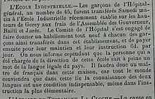 Haut de la Garenne began in 1867 as an industrial school for "young people of the lower classes of society and neglected children".[1] The construction of the school was funded at a cost of £2,410[2] by the Assembly of Governor, Bailiff and Jurats in order to house and educate boys formerly looked after at the General Hospital in Saint Helier.[3] On 22 June 1867, 45 boys were transferred by coach to the new institution, overseen by Jurats Neel and Aubin, Charles Simon, director of the hospital, and Mr. Higginbottom, master of the new school.[4]