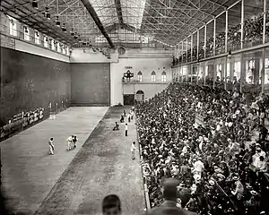 Among the visitors is Ernest Hemingway,[lower-alpha 1] some photos attest to this, who made a great friendship with Guillermo Amuchastegui, the Ondarroa phenomenon, who became a regular in Havana who made a great friendship with Guillermo Amuchastegui, the Ondarroa phenomenon, who became a regular in Havana's high society of the time. It was not uncommon to see a multitude of ladies of the time go to the fronton with their best clothes. Another fan of the Palace of Screams was Babe Ruth who according to the gossips left about $10,000 in gambling and an injury for trying to play the "fastest sport in the world" as the press called the top basket.[5]