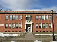 The historic district encompasses a section of Hazard Avenue (Connecticut Route 190 and adjacent roads, as well as a now-parklike section of the banks of the Scantic River, where the operations of the Hazard Powder Company were located. The district is dominated by four public buildings constructed of brick with brownstone trim: a public school, the Hazardville Institute, the former St. Mary's Episcopal Church, now incorporated as Holy Trinity Episcopal Church,[3] and the Hazardville United Methodist Church.[2]: 33–34 The school and the institute are both of Italian Renaissance Revival design and were built in 1864 and 1869, respectively. The Episcopal church is a Gothic Revival structure built in 1863. The Methodist church, built in 1872, is in the Romanesque Revival style.[2]: 29