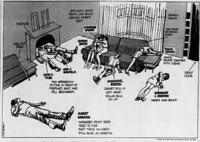 ![]() A crime scene drawing by Dick Mayer, Detroit Free Press | |