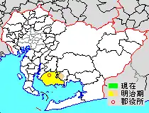 On 15 December 1953, Nishio was elevated to city status, annexing the towns of Hirasaku and Terazu and two villages later that year. On 10 March 1955, Yoshida and the village of Yokosuka were merged to form the town of Kira, leaving the district with three towns and no villages.