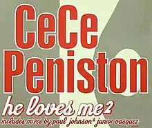 "He Loves Me 2" is a 1999 song by the musician CeCe Peniston. This single was to be originally included on the singer's album, which was not released. A remix of the song, Paul Johnson's Dancefloor Dub, entered the Billboard Hot Dance Music/Club Play chart, where it peaked at number twenty-four in November 1999, after being classified number five as the Billboard Hot Dance Breakouts in the Club Play category.[1]
