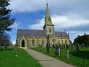 The church, dedicated to St Paul, is a Grade II* Listed building completed in 1848.[8] It was designed in the decorative style by the Victorian architect Edward Buckton Lamb and has a central tower with a spire.[9] The stained glass east window was donated by Sir Robert Frankland-Russell.[10] The north window was commissioned by Lamb and bears his initials. The west window may also be to his design.[8]