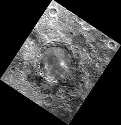 Heaney is a crater on Mercury. It has a diameter of 125 kilometres (78 miles). Its name was adopted by the International Astronomical Union (IAU) on March 20, 2017. Heaney is named for the Irish poet and playwright Seamus Heaney.[1]