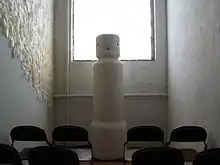 Dewey-Hagborg's Totem (2010) was a site-specific multimedia sculpture characterizing her earlier work. Totem, an idol, was designed to explore the implications of language and artificial intelligence using machine learning technology.[20] Exploiting audio surveillance techniques to eavesdrop on and record conversations at the installation site, Dewey-Hagborg wrote algorithms to then isolate word sequences and grammatical structures into commonly used units. Influenced by Hebbian theory, she programmed the sculpture's computer to generate speech based on the most frequently occurring language structures in any given recording period. Over time, the least frequently elicited words or units would fade or be dropped from the sculpture's spoken vocabulary. The remaining units, stored in the sculpture's memory, were then spoken at random intervals.[21]