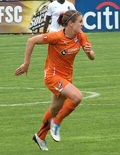 Heather Ann O'Reilly (born January 2, 1985) is an American professional women's soccer player who plays as a midfielder for North Carolina Courage U23.[2] She played for the United States women's national soccer team (USWNT), with whom she won three Olympic gold medals and a FIFA Women's World Cup. From 2003 to 2006, she played college soccer for the University of North Carolina at Chapel Hill (UNC-CH). During her club career, O'Reilly played for the New Jersey Wildcats (USL W-League), Sky Blue FC (WPS), Boston Breakers (WPSL Elite and NWSL), FC Kansas City (NWSL), Arsenal Ladies (FA WSL), North Carolina Courage (NWSL), and Shelbourne (WNL).[3][4]
