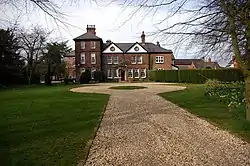 Heawood Hall is a country house, now divided into three houses, southwest of the village of Nether Alderley, Cheshire, England. It originated in the late 17th century; a tall wing was added in the 18th century.[1] Further alterations were made in 1899, and again in the 20th century. It is constructed in red brick with buff sandstone dressings, and is roofed with Welsh slate.[2] Figueirdo and Treuherz describe it as "a complicated and disjointed-looking house".[1] The three houses are named Heawood Chase, Heawood Hall and Heawood House. The building as a whole is recorded in the National Heritage List for England as a designated Grade II listed building.[2]