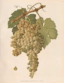 Hebén is a very rare white grape variety grown for wine and table grapes in Spain. It is an ancient variety found to have originated as a table grape in North Africa as Gibi. It is the parent variety of a large number of grapes grown in the Iberian Peninsula and the wider Mediterranean. It has paired with Alfrocheiro to produce the rare Portuguese varieties Trincadeira das pratas, Tinta grossa, Castelão branco, and Malvasia fina, as well as the Spanish Allarén. With Muscat of Alexandria it has produced Moscatel nunes/Nuno gomes in Portugal and Moscatel de Angüés in Spain. In Spain, it has a parent relationship with some very widely grown varieties: Airén, Cayetana, Viura, Xarel·lo, and Pedro Ximénez. In total, around 60 offspring varieties have been identified. Its sparse bunches are an attribute that can be seen some in children varieties such as Pedro Ximénez and Xarello. It produces solely female flowers, unlike the majority of self-pollinating vinifera varieties grown for wine today.[1][2]