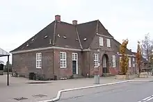 The current station building was built in 1917 to designs by Danish architect Heinrich Wenck, known for the numerous railway stations he designed across Denmark in his capacity of head architect of the Danish State Railways from 1894 to 1921.