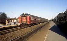 Hedehusene railway station is a railway station serving the railway town of Hedehusene, a suburban town of Copenhagen in Zealand, Denmark.[1] It is located in the centre of the town, immediately adjacent to Hedehusene's bus station.