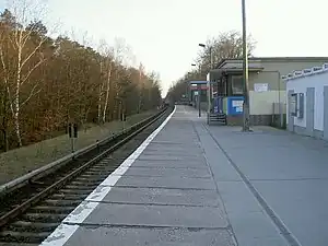 Hegermühle is a railway station in the city of Strausberg in Brandenburg. Located on the Strausberg–Strausberg Nord line, it is served by the S-Bahn line S5.