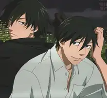 During Gemini of the Meteor, the second anime, Kiuchi said that he found Hei a far darker character for some reason. The actor said that Hei is notably strict with younger lead Suo Pavlichenko, and he wished that Hei would show a more caring side to the teenager.[7] Although there were only two years between both Darker than Black series, the actor found voicing Hei challenging because of the change in his personality.[8] Instead of a happy ending, however, the original video animations and the sequel Gemini of the Meteor strike a noir note based on Gee's comments.[9] Hei cannot enjoy life in the sequels,[10] leading him to begin a new journey in which he aids the young Suo in the process.[11] Okamura wanted the original video animations (OVA)s plots to center on Hei and Yin's relationship after the first anime, leading to Gemini of the Meteor. About Hei's history with Yin, the writer for Gaiden said that he found it depressing that Hei said in Gemini of the Meteor that he was going to kill Yin.[12][13] Yasushi Ishii wrote "Darker than Black", a song centered around Hei, for the OVAs. According to Ishii, the character is a man who fights to achieve salvation in a world without salvation – a man in a world of struggle, mercy, and overcoming oneself. Despite Hei's powers, Ishii wanted to highlight the character's essential loneliness.[5]